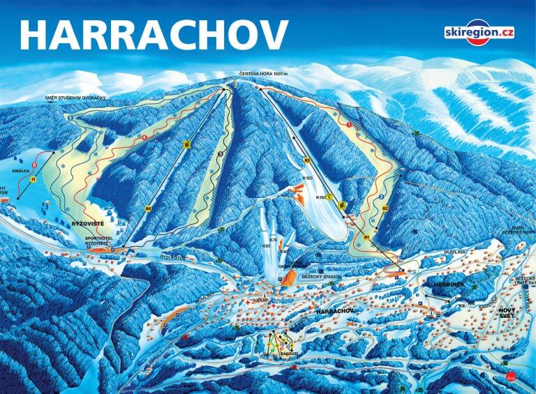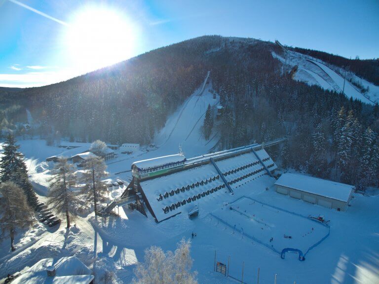 Harrachov is a good choice not only for downhill skiers but also for cross-country skiers. Cross-country skiers can find a large number of regularly groomed trails that are suitable for classic style and for skate as well. Jakusczyce (PL), which is literally a paradise for cross-country skiers is not a long way from Harrachov.